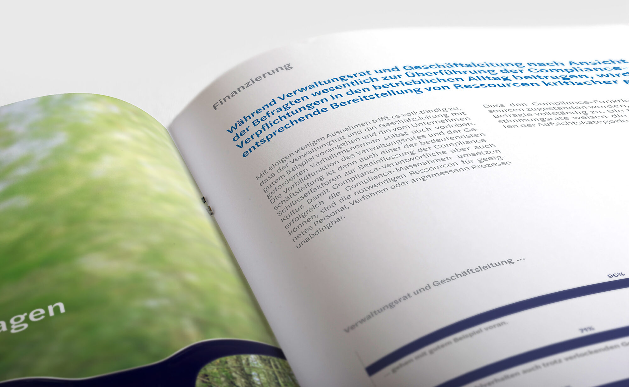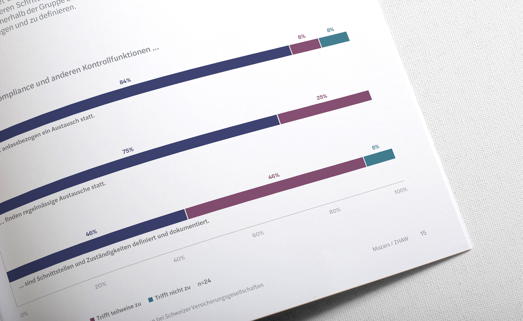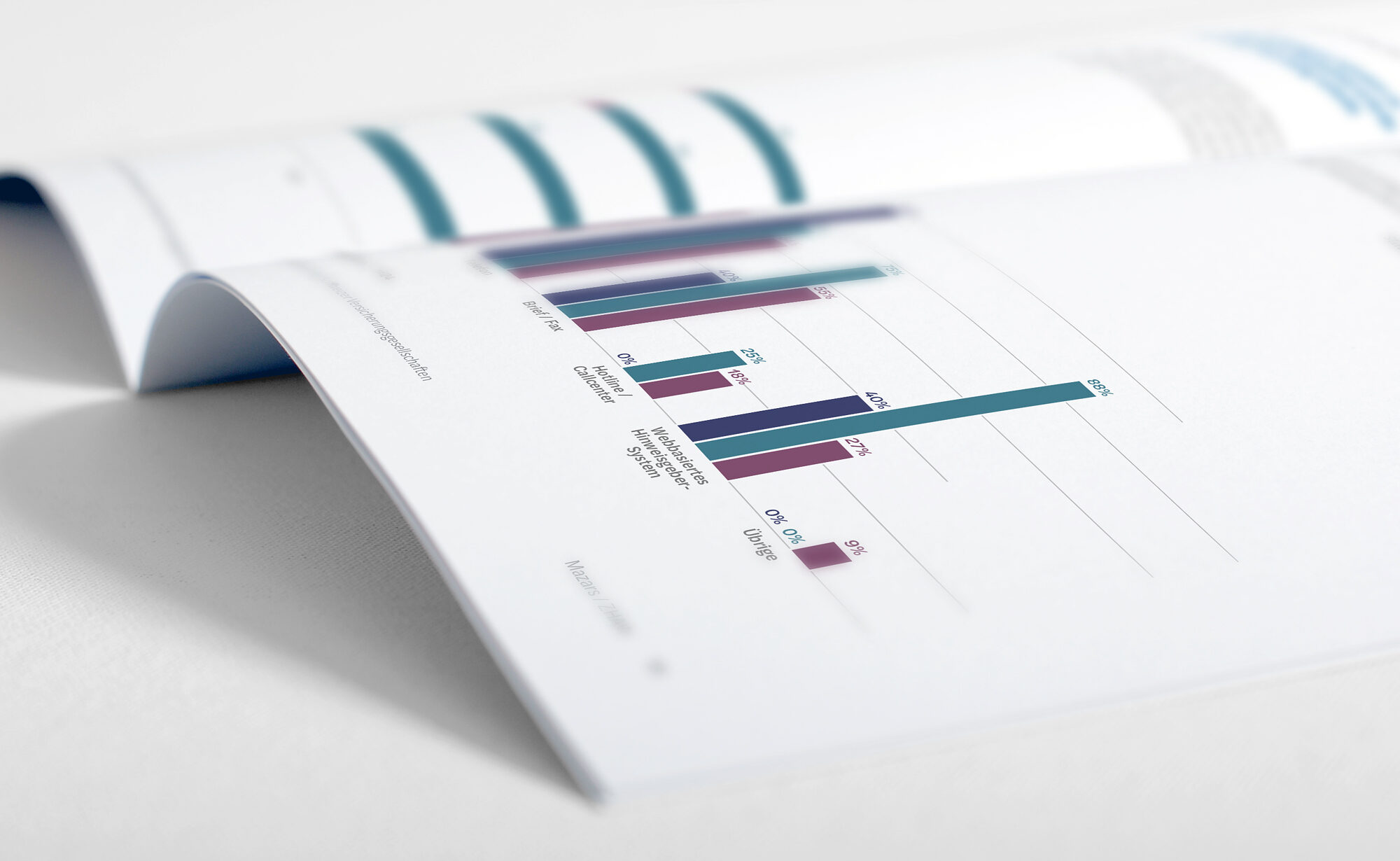 Ergänzend entstand das Layout der Studienbroschüre samt ausführlichen Umfrageergebnissen zum entspannt Nachschmökern. Die Grafiken und Charts auf rund 40 Seiten werden durch die sympathische Bildwelt aufgelockert. Die Tabellen im reduzierten Layout erfreuen auch bei grosser Textlast das Auge. Die jeweilige Thematik wird durch eine simplifizierte Icon-Serie schnell erfassbar.