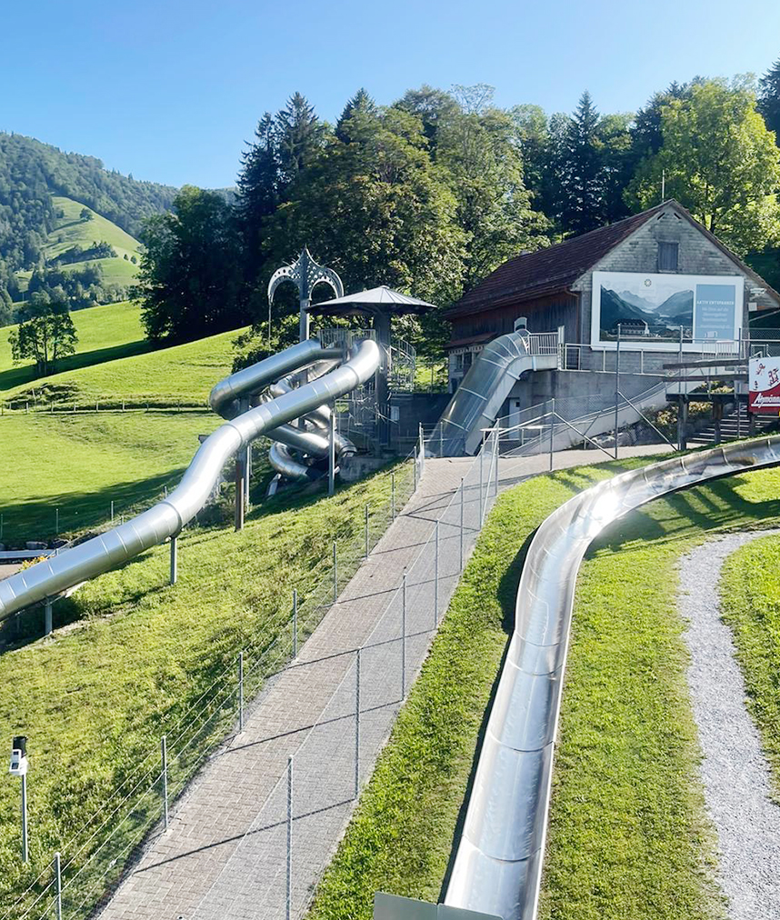 Am Atzmännig angekommen führte eine gemütliche Gondelfahrt zur Rodelbahn an der Mittelstation. Und ohne langes Warten, auf zur rasanten Rodelpartie. Jubelnd, rumpelnd und sausend den Berg «abe frèèsen», wie früher als Kind. Der ein oder andere Adrenalin-Junkie hat sich bereits hier geoutet: Bremsen? Was für Angsthasen.