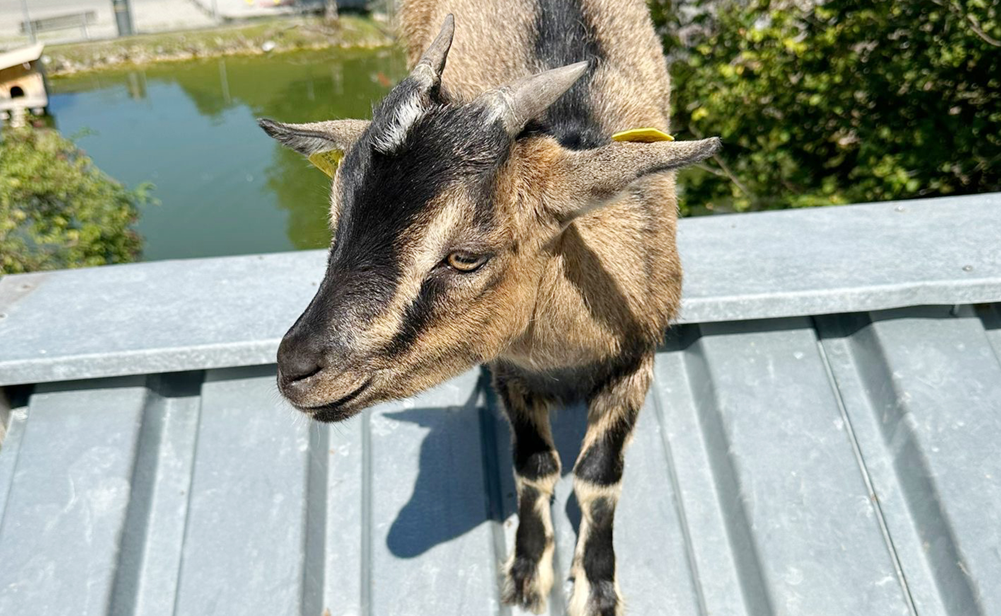 Mit textilen Beschleunigern (wie nennt man die eigentlich?) stürzte man sich in die teils abenteuerlich steilen Röhrenrutschen. Die Einen fuhren laut kreischend gleich mehrfach die senkrechte «Todes»-Rutsche. Die Anderen gingen es gemütlicher an. Bis unsere Aufmerksamkeit bald von ganz herzigen Bergbewohnern angezogen wurde: den Ziegen. Beinahe hätte unser Büro Zuwachs erhalten, der Geruch des Ziegenbocks hat uns aber schnell wieder zur Vernunft gebracht. So blieb es nur bei therapeutisch wertvollen Streicheleinheiten.